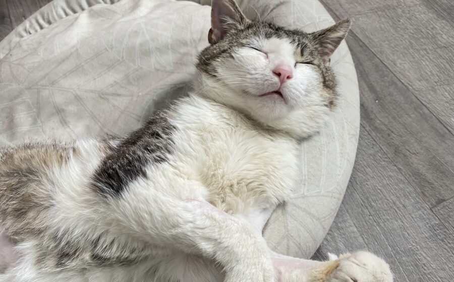 Unter seinen verschlafenen Schnurrlauten und seinem gemütlichen Wesen verbirgt sich das Herz eines zähen Überlebenskünstlers. Trotz seiner schweren Vergangenheit begegnet er der Welt mit Sanftmut. Als echter Couch-Potato verbringt er seine Tage ruhig und entspannt, was ihn besonders für Menschen geeignet macht, die eine gelassene Katze suchen. Er ist jung, anhänglich und voller Liebe. Aber gegen eine tägliche Spielrunde mit seinen Bezugspersonen ist er auch immer zu haben.