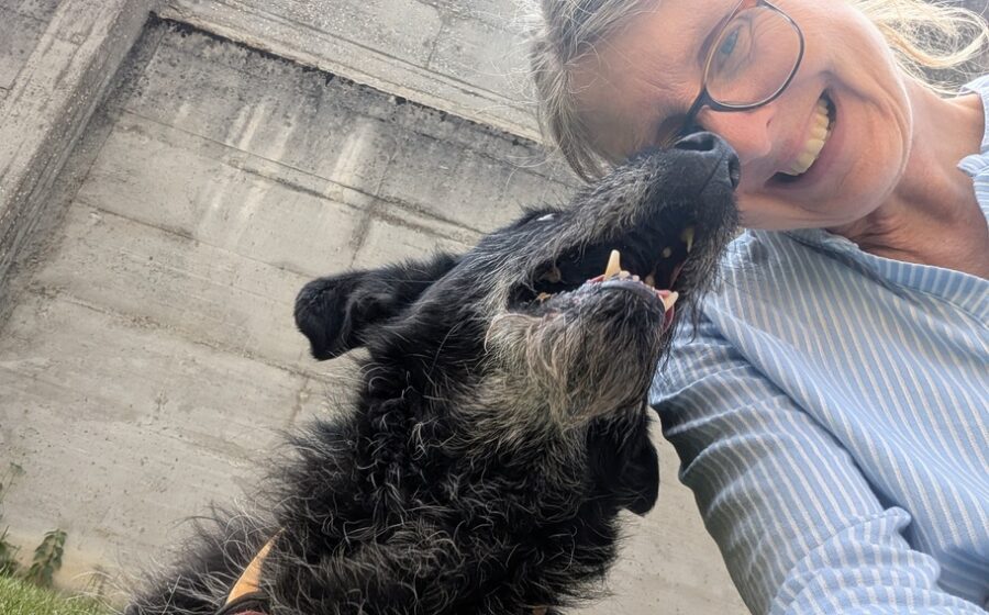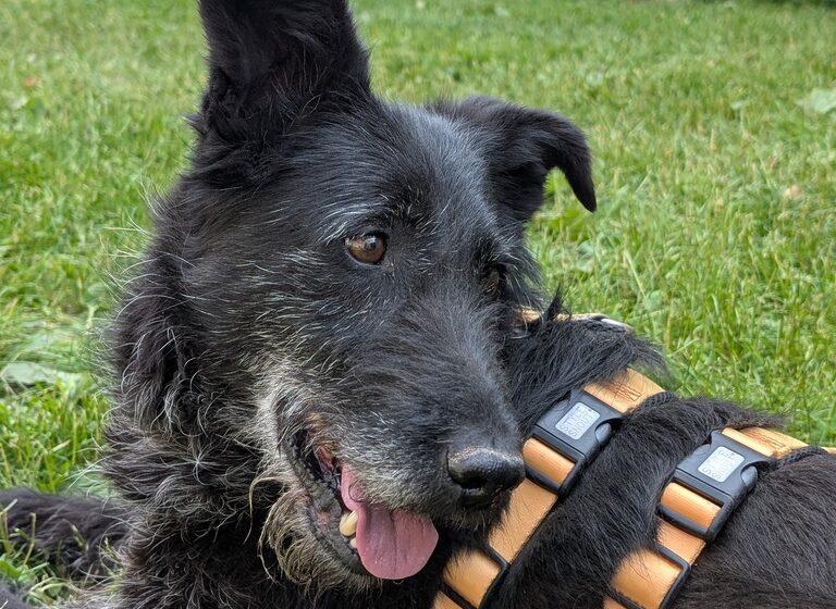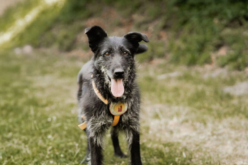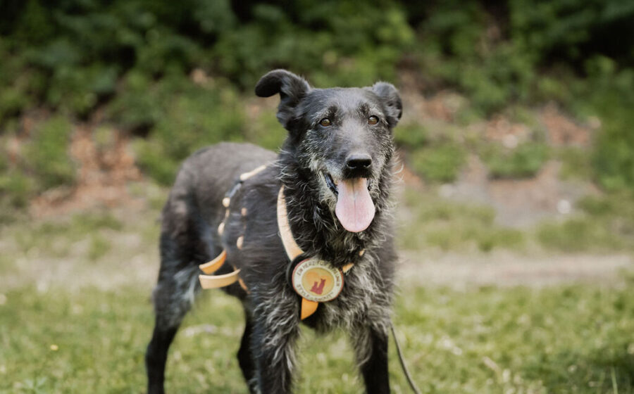 In ihrem liebevollen Blick spiegeln sich die Erfahrung und die Fürsorge einer Hundemama wieder, die sich hingebungsvoll um ihre Welpen gekümmert hat. Wie viele Würfe sie hatte, ist nicht bekannt, doch ihr sanftes Wesen erzählt eine Geschichte von Liebe und Fürsorge. Mit ihren schimmernden Bernsteinaugen, den markanten Yoda-Ohren und ihrem schwarz-grau melierten Fell bringt Hazel eine einzigartige Schönheit mit. Mit ihren 23 kg und 52 cm Schulterhöhe hat sie eine angenehme, mittelgroße Statur. Vielleicht steckt irgendwo in ihrem Stammbaum ein Deutsch Drahthaar – aber das bleibt reine Spekulation.