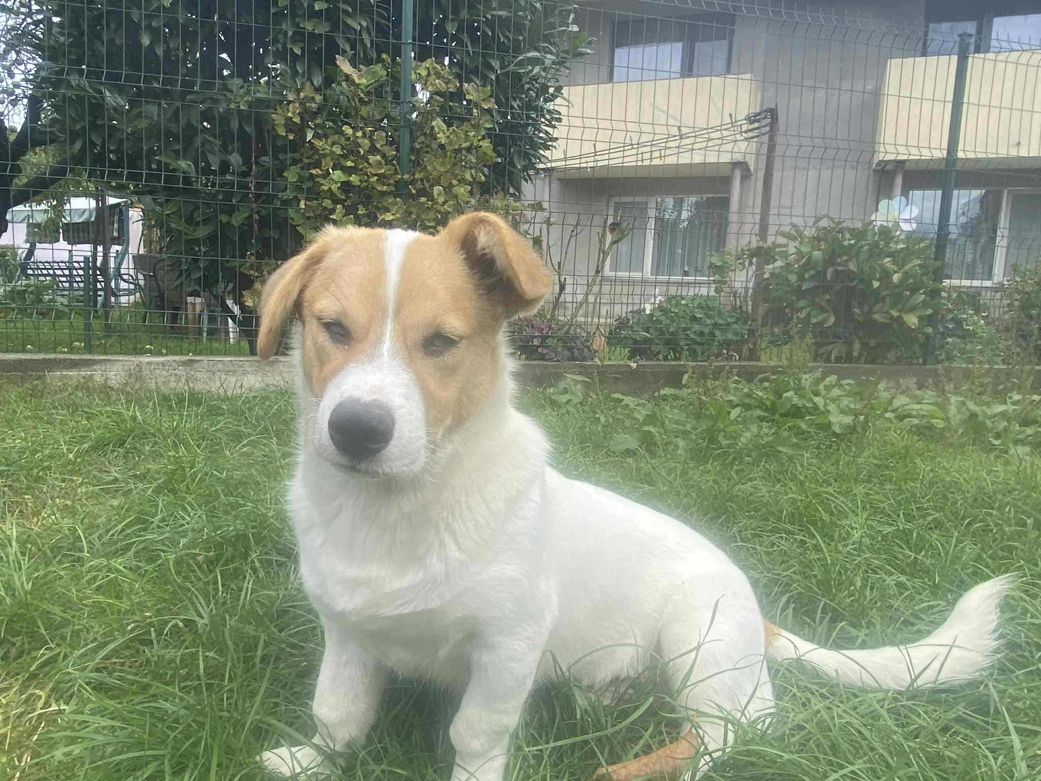 Herzblatt ist ein besonders hübscher Welpe. Er hat kurzes, weiches, weißes Fell mit hellbraunen Abzeichen, treue braune Augen und lustige Schlappohren. Voraussichtlich wird er zu einem eher kleineren Hund heranwachsen. Aktuell ist er ca. 6 Monate alt.
