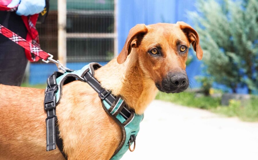 Mit ca. 60 cm Schulterhöhe gehört Hokey zu den eher großen Hündinnen. Sie hat kurzes, rotbraunes Fell und ein besonders vornehmes Gesicht mit einer dunklen Zeichnung und goldbraunen Augen. Ihre Farbe und der sportliche, muskulöse Körperbau lassen darauf schließen, dass es sich bei Hokey um eine Jagdhund-Mix-Hündin handeln könnte. Die wunderschöne Hündin ist erst ca. drei Jahre alt und hat damit genau das richtige Alter, nochmal ganz neu durchzustarten. Trotz der misslichen Lage, in der sie sich befindet, hat Hokey den Glauben an die Menschen nicht verloren. Sie ist sehr freundlich und aufgeschlossen uns Menschen gegenüber, ihre Verträglichkeit mit Artgenossen konnte leider noch nicht getestet werden.