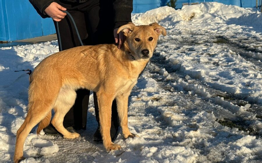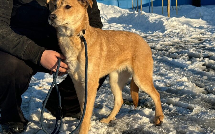 Holly ist etwa 5 Monate alt und hat aktuell eine Schulterhöhe von ca. 50–55 cm. Ausgewachsen wird sie vermutlich ein mittelgroßer bis größerer Hund sein. Ihr hellbraunes Fell, die warmen braunen Augen und ihre lackschwarze Nase verleihen ihr ein besonders freundliches und sanftes Aussehen. Ihr wunderschönes Gesicht und ihre schlanke Statur machen sie zu einer sehr eleganten jungen Hündin.