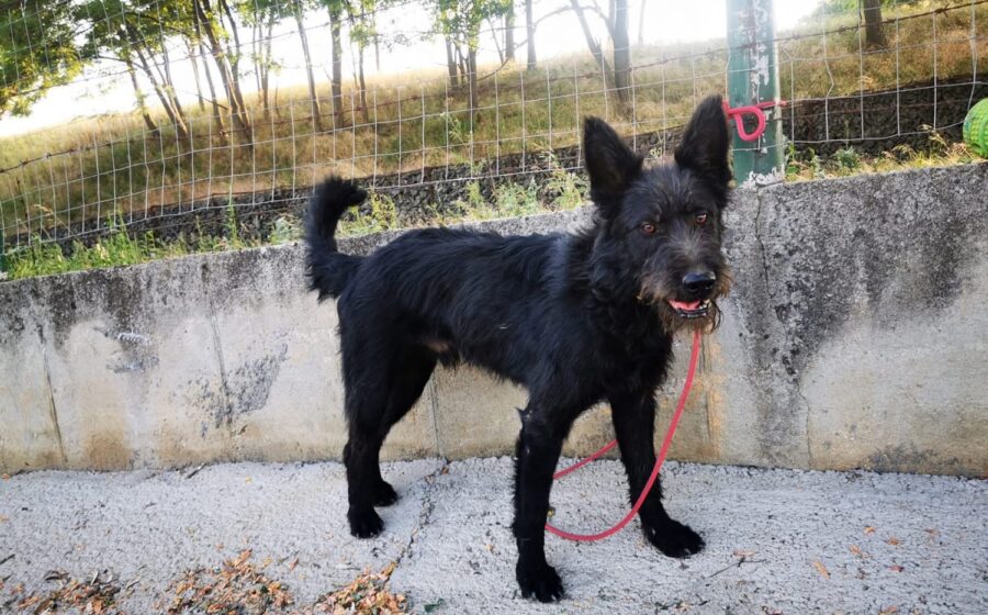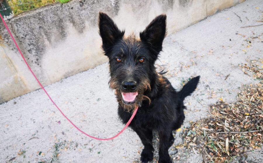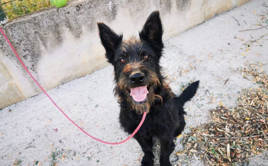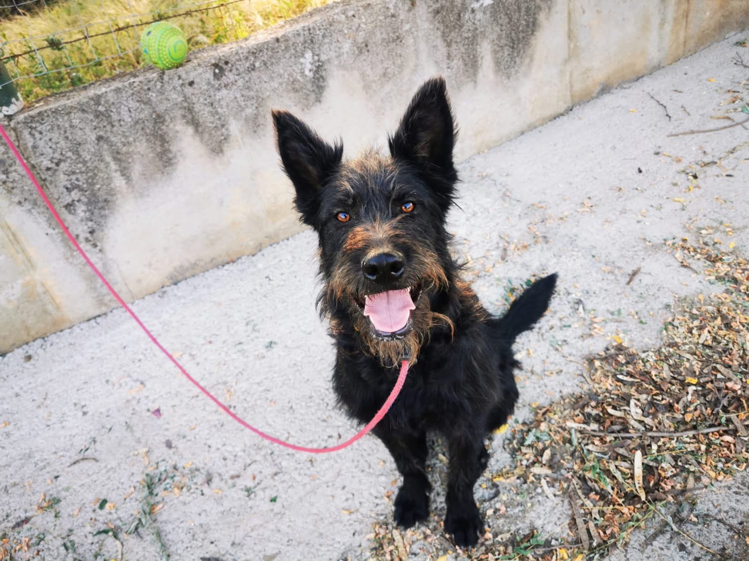 Mischling Houdini wiegt ca. 22 kg und misst etwa 55 cm Schulterhöhe. Mit seinem dunklen Fell, der charmant fransigen Schnauze und den aufmerksamen Stehohren ist er ein toller Hingucker – markant und unverwechselbar. Man könnte vermuten, dass ein Terrier-Schnauzer-Mix in ihm steckt, aber das bleibt reine Spekulation. Sicher ist aber: Er ist ein echter Schatz!