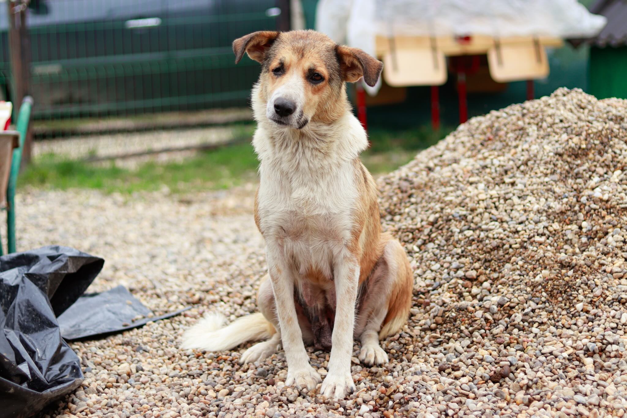 Ira ist eine Schönheit mit sanftem Blick. Sie ist etwa vier Jahre jung und hat eine Schulterhöhe von 50–55 cm – also eine charmante mittelgroße Hündin. Ihr hellbraun-weißes Fell schimmert in der Sonne, die lackschwarze Nase und die warmbraunen Augen verleihen ihr einen besonders sanften Ausdruck. Nur eines dieser Augen – ihr rechtes – ist blind, doch das mindert weder ihre Schönheit noch ihre Lebensfreude. Im Gegenteil: Es zeugt von ihrer Stärke und davon, was sie bereits hinter sich gelassen hat. Ihre schlanke, elegante Statur und ihr wunderschönes Gesicht machen Ira zu einer ganz besonderen Hündin, die man einfach ins Herz schließen muss.