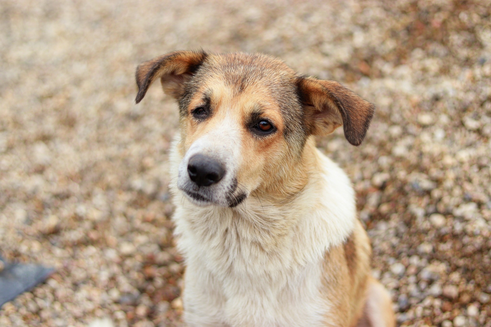 Ira ist eine Schönheit mit sanftem Blick. Sie ist etwa vier Jahre jung und hat eine Schulterhöhe von 50–55 cm – also eine charmante mittelgroße Hündin. Ihr hellbraun-weißes Fell schimmert in der Sonne, die lackschwarze Nase und die warmbraunen Augen verleihen ihr einen besonders sanften Ausdruck. Nur eines dieser Augen – ihr rechtes – musste operativ entfernt werden, doch das mindert weder ihre Schönheit noch ihre Lebensfreude. Im Gegenteil: Es zeugt von ihrer Stärke und davon, was sie bereits hinter sich gelassen hat. Ihre schlanke, elegante Statur und ihr wunderschönes Gesicht machen Ira zu einer ganz besonderen Hündin, die man einfach ins Herz schließen muss.