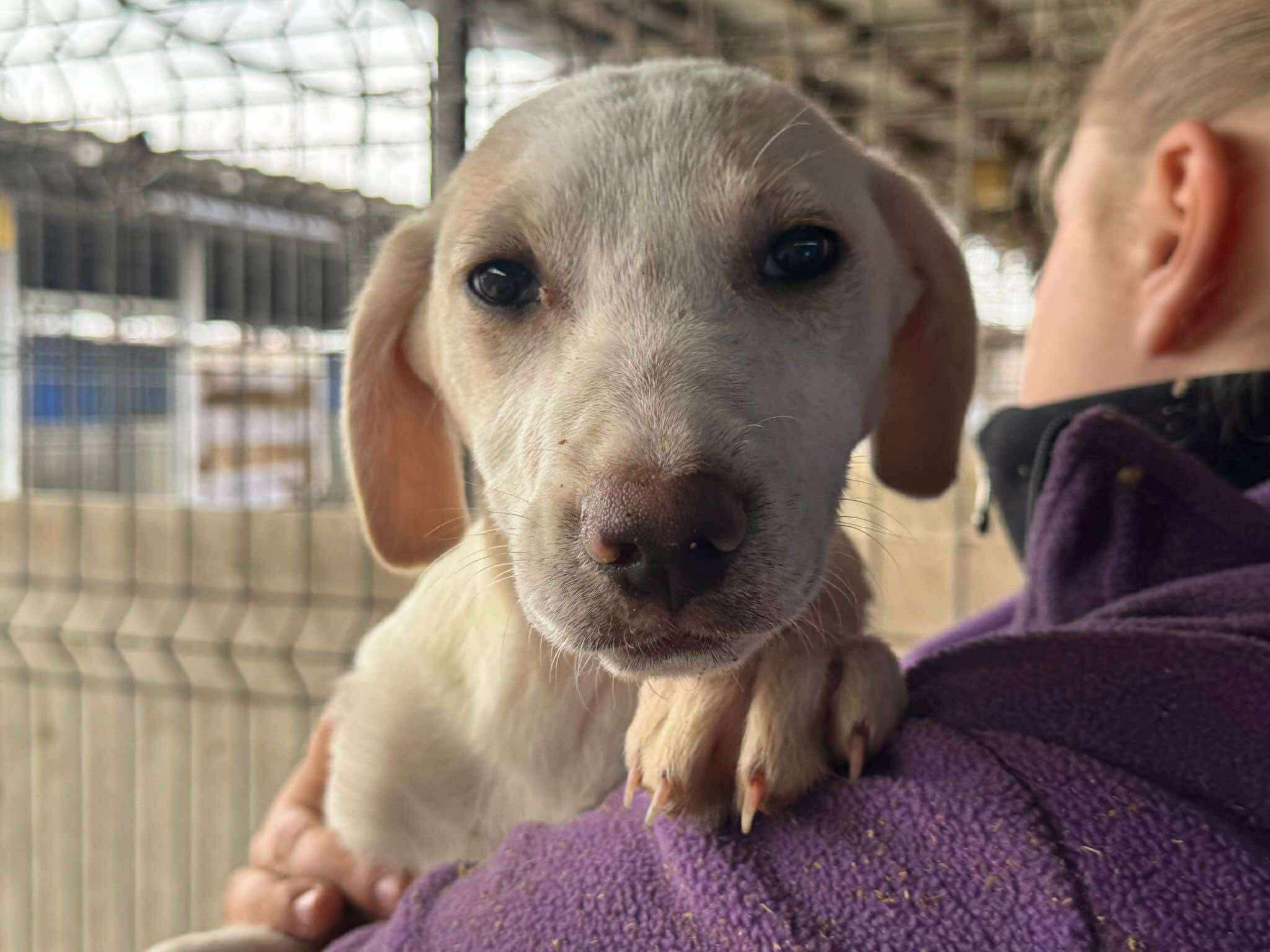 Irma ist ein etwa 3 Monate altes Hundemädchen, das später vermutlich zu einer mittelgroßen Hündin heranwachsen wird. Ihr weißes Fell, ihre sanften braunen Augen und ihr wunderschönes Gesicht lassen niemanden unberührt. Sie wirkt zart, neugierig und voller Möglichkeiten – als würde sie fragen: „Zeigst du mir, wie ein echtes Zuhause ist?“