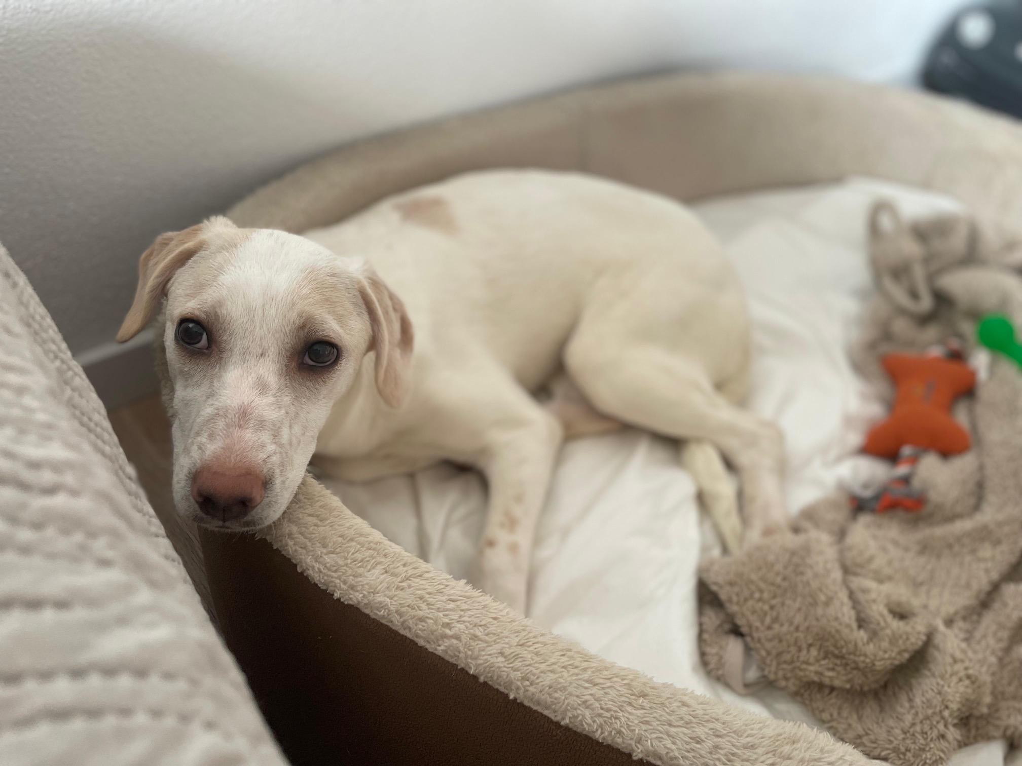 Irma hat den großen Schritt geschafft und ist gut in ihrer Pflegestelle in Deutschland angekommen. Dort zeigt sich schnell: In ihr steckt eine fröhliche, kluge kleine Persönlichkeit mit ganz viel Charme – und einem großen Kuschelbedarf.