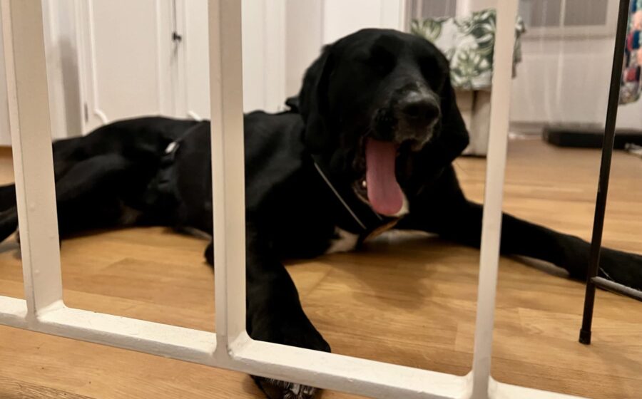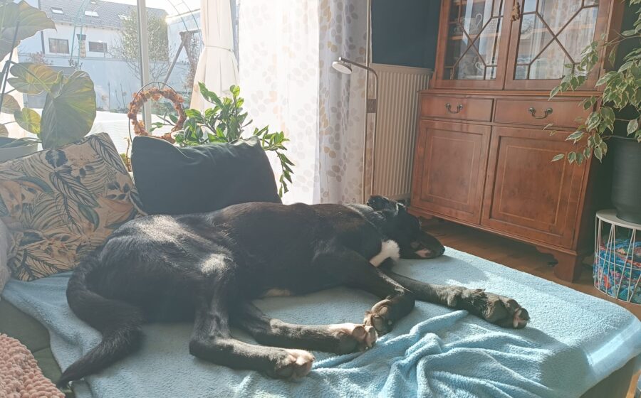 Auch das Alleinbleiben ist noch nicht seine Stärke. Er macht zwar nichts kaputt, wenn er allein ist, kommt aber schwer zur Ruhe und hat anfangs viel geweint. Mittlerweile macht er Fortschritte, braucht aber weiterhin Menschen, die mit ihm kleinschrittig üben und ihn nicht überfordern.