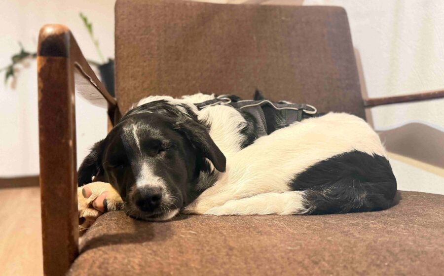 Das Alleinbleiben fällt ihm aktuell noch schwer. Mal klappt es schon ganz gut, an anderen Tagen braucht er noch viel Unterstützung. Hier müssen seine zukünftigen Menschen geduldig bleiben und das Training kleinschrittig weiterführen.