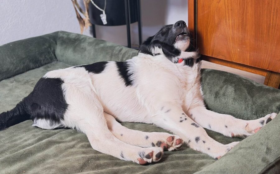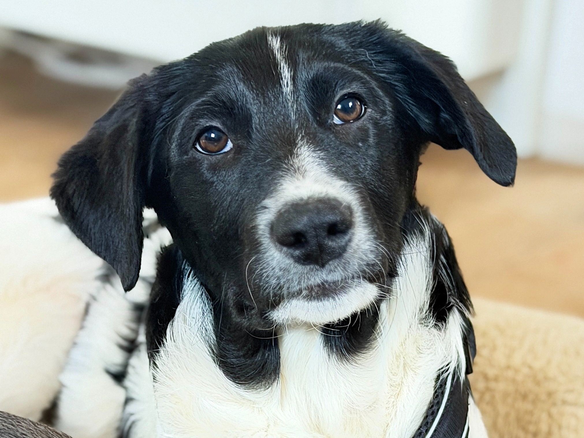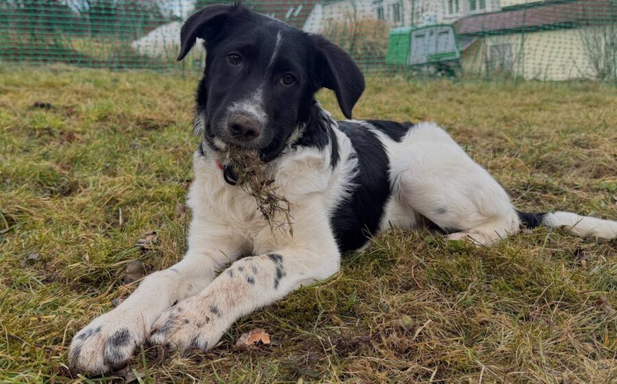 Jakko ist ein wunderschöner schwarz-weißer Jungrüde mit ausdrucksstarken Augen und großen Pfoten, die jetzt schon verraten, dass er einmal ein stattlicher Hund werden wird. Sein Blick hat oft etwas Verschmitztes, als würde er genau überlegen, ob sich das, was man von ihm möchte, wirklich lohnt. Und genau das macht ihn so charmant. Er ist kein aufgedrehter Dauerclown, sondern ein junger Hund mit Charakter, der neugierig durchs Leben geht, dabei aber gerne in seinem eigenen Tempo.