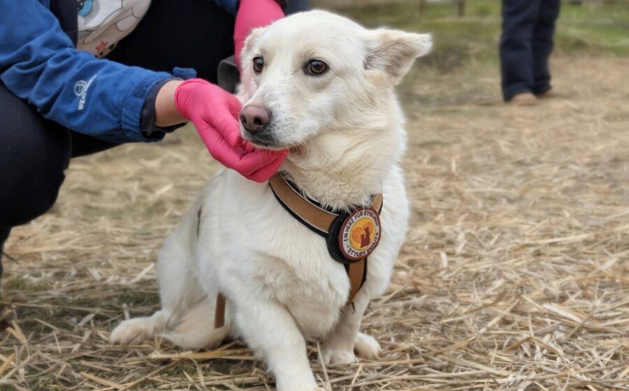 Nimmt man sich ein bisschen Zeit, kommt sie dann auch heraus – vor allem bei ihr bekannteren Gesichtern wedelt sie schon fleißig mit ihrer Rute. Ein wenig streicheln darf man sie mittlerweile ebenfalls. Auch einen Probelauf an der Leine hat sie bereits gemeistert. So ganz geheuer ist ihr das alles zwar nicht, aber Jana gehört zu den Hunden, die „es mit sich machen lassen“. Trotzdem gilt: bitte immer schön langsam und Schritt für Schritt, denn Vertrauen muss behutsam und ohne Bedrängung aufgebaut werden. Rom ist schließlich auch nicht an einem Tag erschaffen worden.