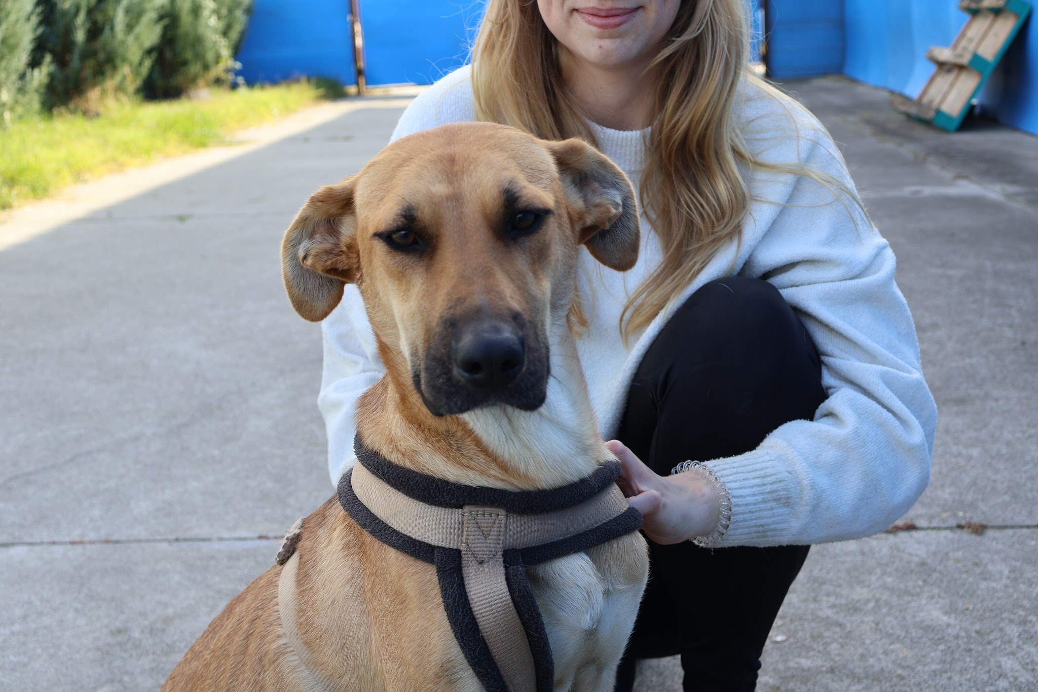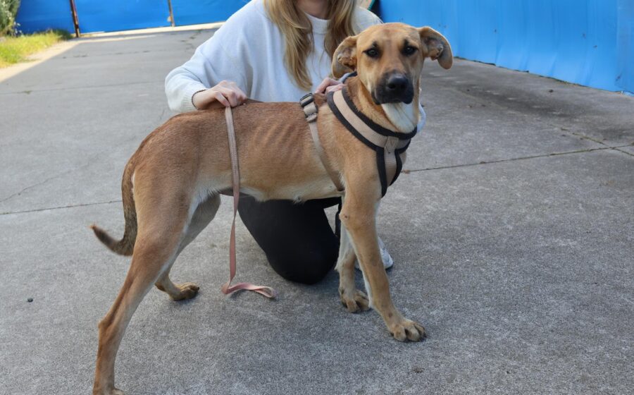 Janna ist etwa 1 Jahr alt, hat eine Schulterhöhe von rund 55–60 cm und ist damit eine mittelgroße, schlanke und sportliche Hündin. Ihr überwiegend hellbraunes Fell mit zarten hellen Akzenten, die lackschwarze Nase und ihre warmbraunen Augen machen sie zu einer echten Schönheit. Doch das, was einen wirklich berührt, ist ihr wunderschönes, liebevolles Gesicht – ein Ausdruck von Sanftmut und Hoffnung.