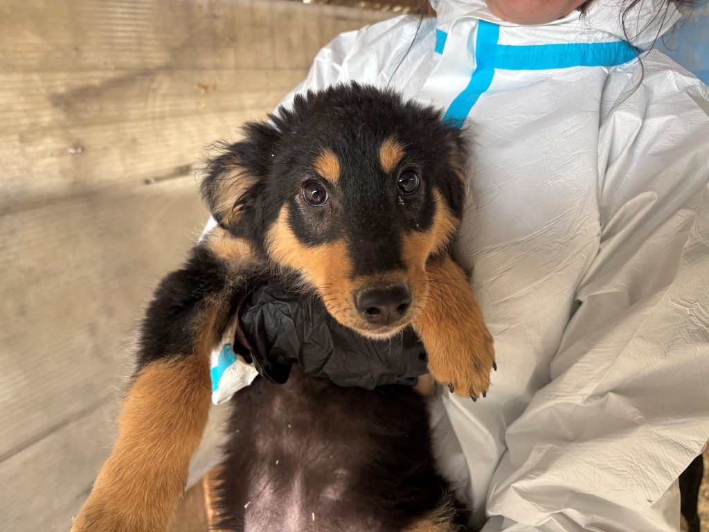 Jara ist etwa 3–4 Monate jung und wird ausgewachsen vermutlich eine mittelgroße Hündin sein. Ihr Fell leuchtet in einem wunderschönen Mix aus Schwarz und Hellbraun, ihre Augen sind warm und voller Neugier, ihre lackschwarze Nase und das goldige Gesicht mit den großen, niedlichen Öhrchen machen sie einfach zum Verlieben.