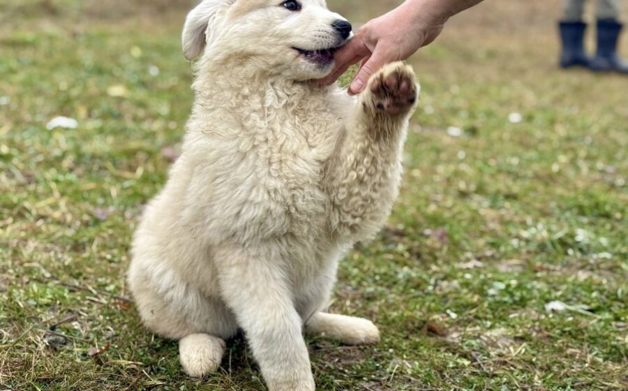 Jarah fällt sofort durch ihr dichtes, flauschiges Fell auf, das sie wie ein kleines Stofftier wirken lässt. Ihr weicher Blick, ihre kräftige, dennoch harmonische Statur und ihr ruhiges Auftreten lassen schon jetzt erahnen, dass sie einmal eine beeindruckende und wunderschöne Hündin werden wird. Alles an ihr wirkt sanft, plüschig und einladend – ein Hundekind, das man am liebsten sofort in den Arm nehmen möchte.