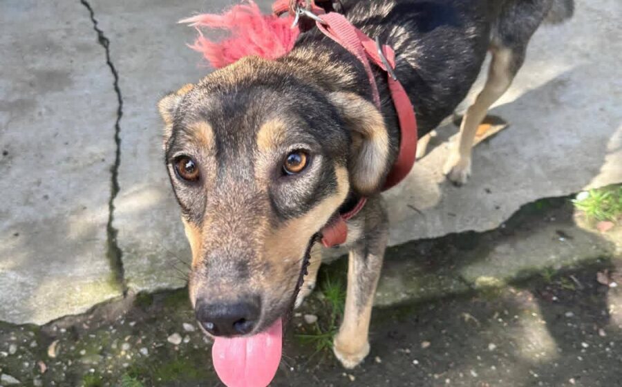 Jella ist eine etwa ein Jahr alte Hündin mit wunderschönem braun-schwarzem Fell und freundlichen hellbraunen Zeichnungen. Als sie von einer tierlieben Frau auf dem Heimweg entdeckt wurde, war sie extrem dünn und hungrig. Die Frau gab ihr Futter und wandte sich an unsere Teamkollegin Anca, die sofort zu Hilfe eilte.