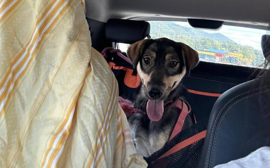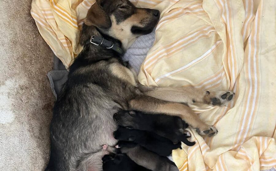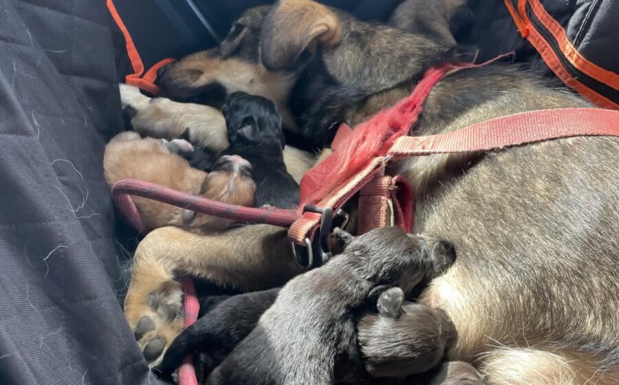 Am Fundort sah Anca sofort: Jella muss vor Kurzem Welpen gehabt haben. Ihr Gesäuge war deutlich geschwollen, doch von den Welpen fehlte jede Spur. Anca nahm Jella mit auf ein eingezäuntes Firmengelände – dort war sie endlich in Sicherheit und wurde versorgt. Gemeinsam mit Dorel fuhr Anca noch einmal zurück und suchte sorgfältig die Gegend ab – tatsächlich konnten sie neun winzige Welpen in einem Graben finden und sofort mitnehmen. Die Wiedervereinigung war rührend: Jella schlief vor Erschöpfung und Glück im Auto sofort ein, als sie ihre Babys wieder bei sich hatte.