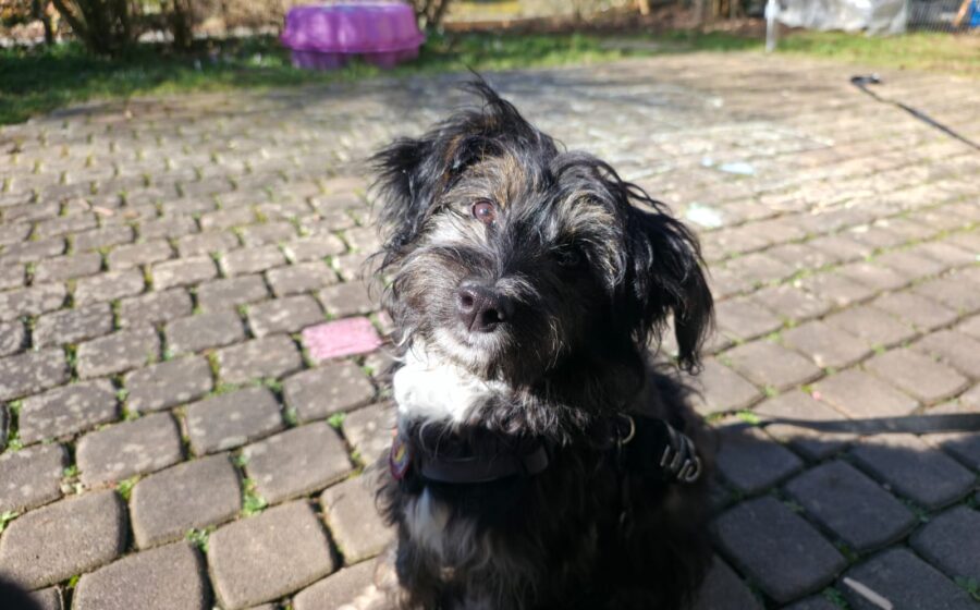 Jona hat eine Schulterhöhe von etwa 29 cm und wiegt rund 7 kg – damit gehört sie zu den kleineren Hunden und passt auch gut in einen eher kompakten Haushalt. Wir gehen davon aus, dass sie nicht mehr viel wachsen wird.