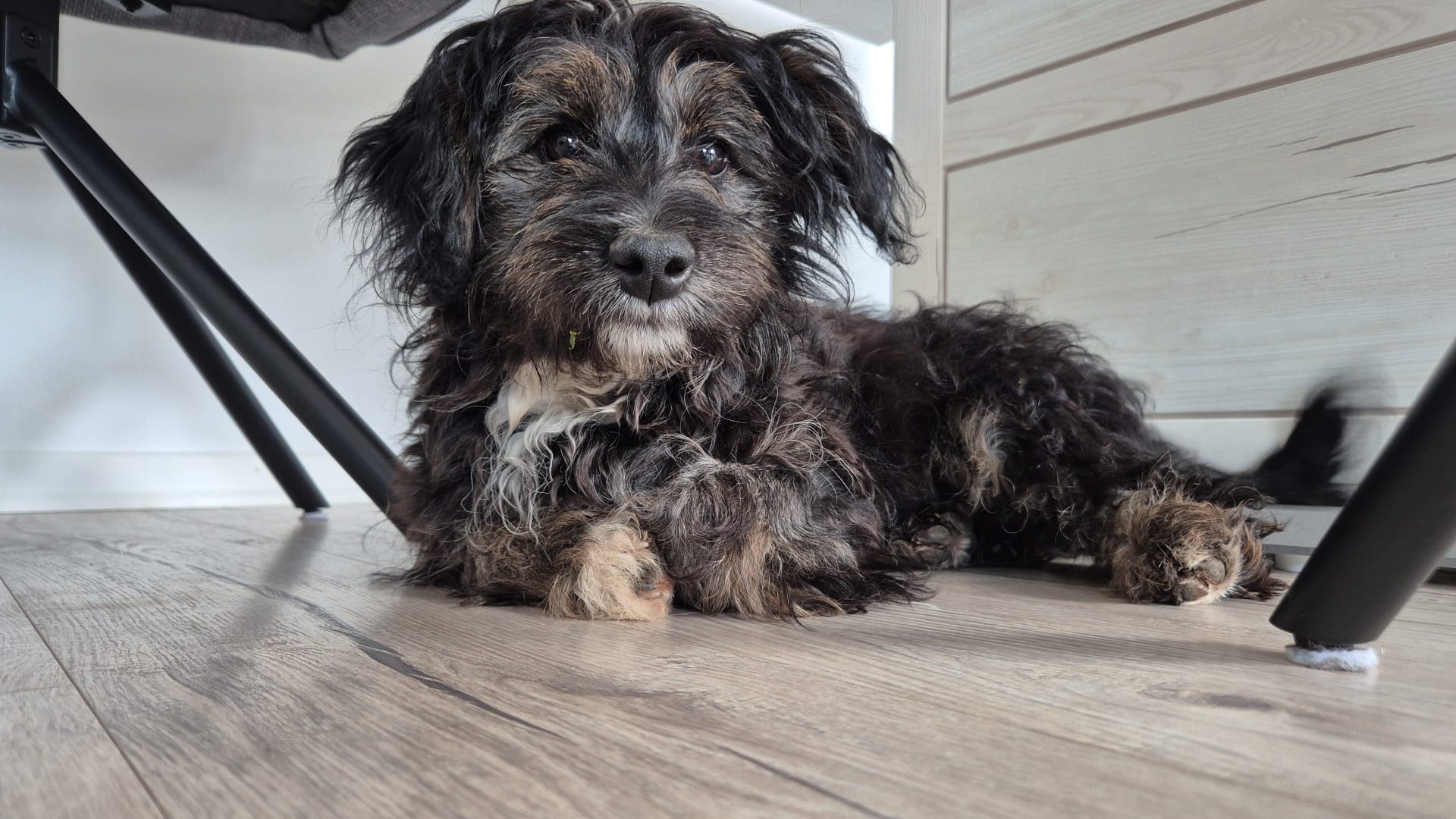 Jona hat eine Schulterhöhe von etwa 29 cm und wiegt rund 7 kg – damit gehört sie zu den kleineren Hunden und passt auch gut in einen eher kompakten Haushalt. Wir gehen davon aus, dass sie nicht mehr viel wachsen wird.