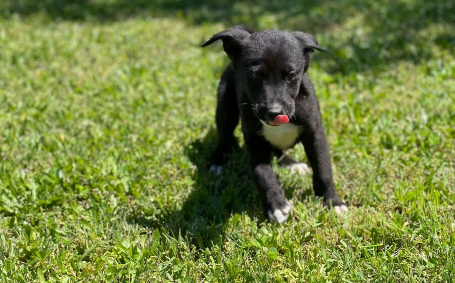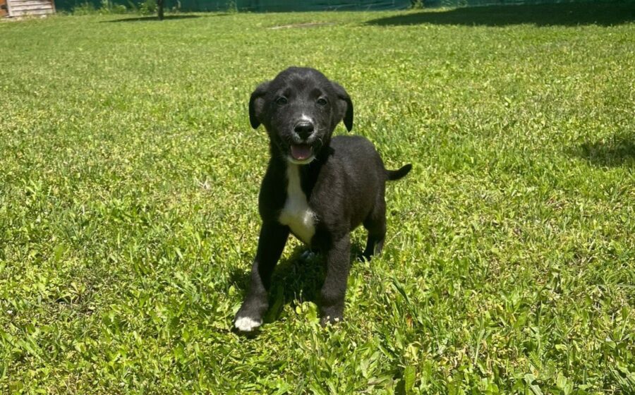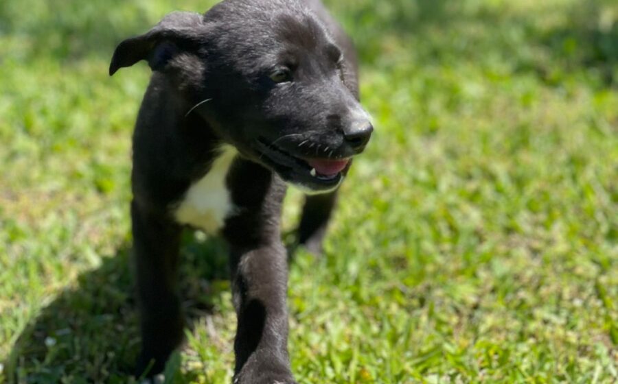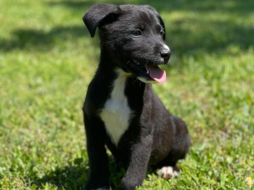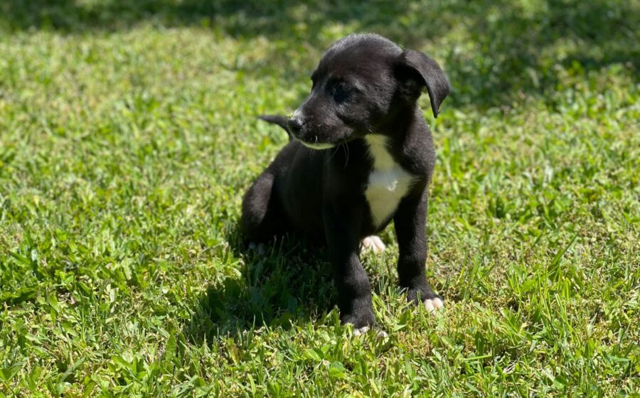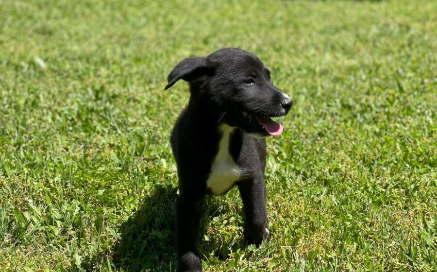 Der rabenschwarze Kalani ist genau wie seine Geschwister ein kleiner Kämpfer, sonst hätte er es sicher nicht geschafft, unter so schweren Startbedingungen zu einem lebensfrohen, gesunden Welpen heranzuwachsen. Er ist freundlich und aufgeschlossen und ein verspielter, kleiner Rüde. Er liebt es, mit seinen Geschwistern herumzutollen. Der kleine Kalani hat kurzes, schwarzes Fell mit schneeweißen Abzeichen an der Brust und an den Pfötchen und einen ganz bezaubernden, bescheidenen Augenaufschlag. Aus schwarzen, blanken Kulleraugen guckt er hoffnungsvoll in seine Zukunft. Der kleine Welpe ist erst zwei bis drei Monate alt und wird sich voraussichtlich zu einem sportlichen und eleganten, mittelgroßen Hund entwickeln.