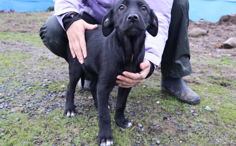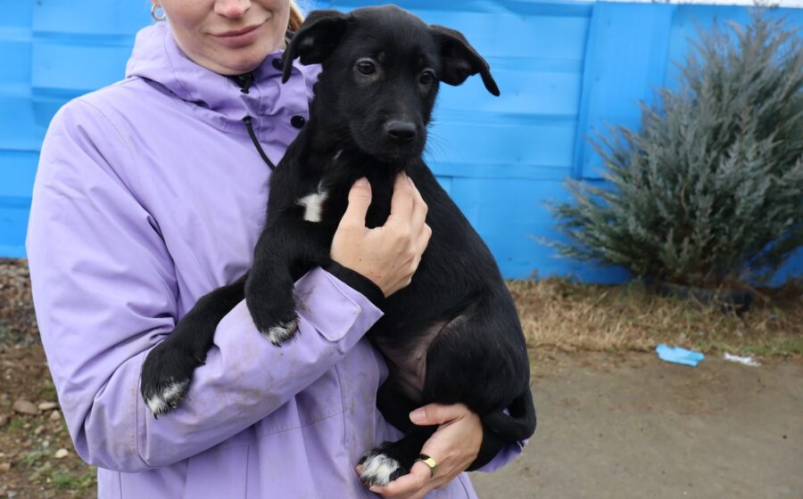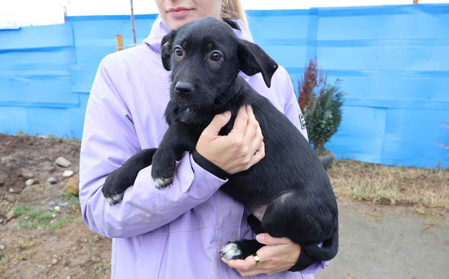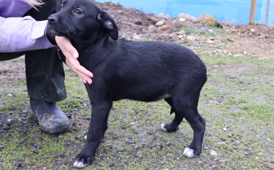 Kanya ist ein zuckersüßes Hundekind und schaut mit ernstem und etwas skeptischem Blick in die Kamera. Vielleicht weiß die kleine Welpin noch nicht genau, wohin der Weg sie führen wird. Kanya hat glänzendes, schwarzes Fell mit einem leuchtend weißen Fleck auf der Brust und weißen Pfotenspitzen und wunderschöne, schwarze Knopfaugen. Das hübsche Hundekind mit dem lieben und treuen Gesichtsausdruck wird voraussichtlich eine mittlere Größe erreichen.