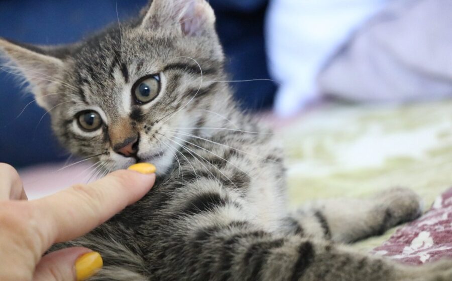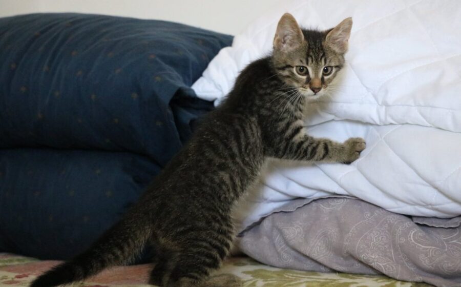 Karlsson versteht sich hervorragend mit anderen Katzen und sollte auf jeden Fall nicht als Einzelkatze gehalten werden – er braucht einen gleichaltrigen Freund, mit dem er toben und spielen kann. Wenn bei dir nicht schon ein Kätzchen wartet, bringt er gern eins seiner Geschwister mit. Ob er mit Hunden gut zurechtkommt, konnte bisher noch nicht getestet werden.