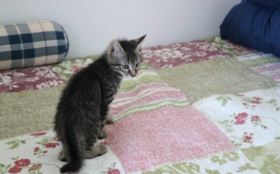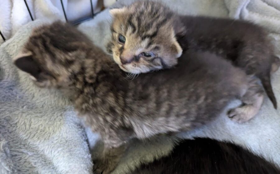 Dieser kleine Kerl hatte keinen leichten Start ins Leben: Mit nur 2 bis 3 Wochen wurde er zusammen mit seiner Mutter in strömendem Regen ohne Unterschlupf gesichtet. Wahrscheinlich wurden sie kürzlich ausgesetzt. Trotz allem zeigt Karlsson sich sehr freundlich und voller Vertrauen.