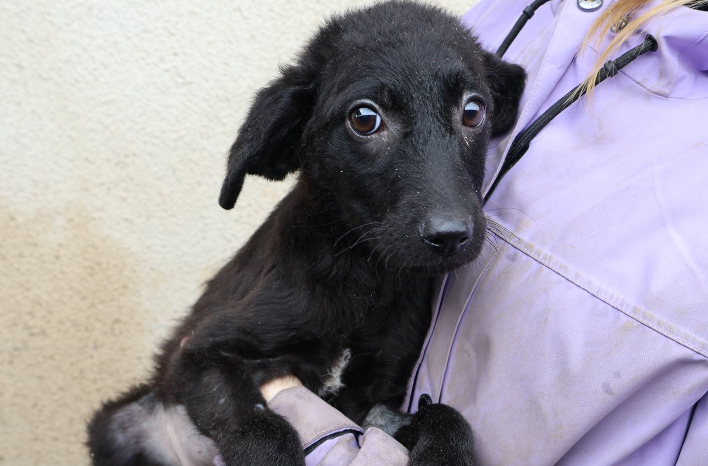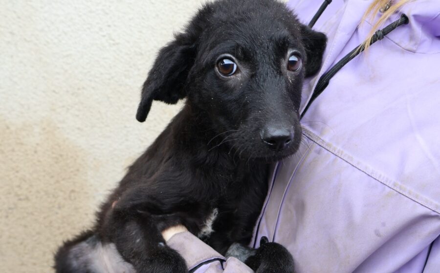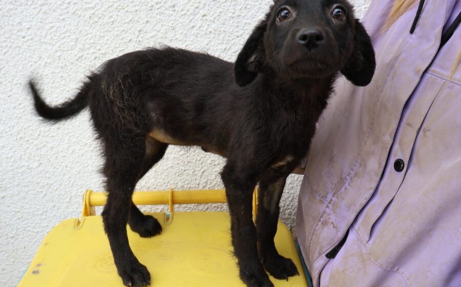 Kimiko ist ein zuckersüßes Hundekind und schaut mit ernstem Blick in die Kamera. Man könnte fast glauben, sie wisse, dass es bei diesem Fototermin um ihre Zukunft geht. Kimiko hat glänzendes, schwarzes Fell, riesige, schwarze Knopfaugen und wunderschöne, kleine Öhrchen. Das hübsche Hundekind mit dem lieben und treuen Gesichtsausdruck wird voraussichtlich eine mittlere Größe erreichen.