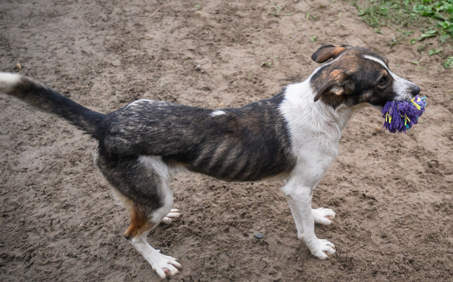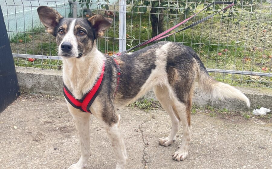 Kiwi ist eine eher unkomplizierte Hundedame – und niemand kann charmanter um Leckerlis betteln als sie. Geschirr und Leine lässt sie sich problemlos anlegen, doch das Laufen daran muss sie noch üben, denn meist bestimmt ihre neugierige Nase die Richtung. Wenn sie die seltene Gelegenheit bekommt, in den Auslaufbereich des Shelters zu dürfen, sprüht Kiwi förmlich vor Energie und flitzt mit den anderen Hunden um die Wette.