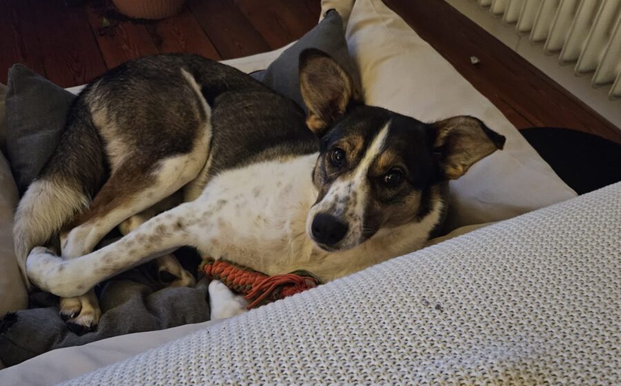 Die hübsche Kiwi ist gut in ihrer Pflegestelle in Bremen angekommen und zeigt sich als charmante, abenteuerlustige und selbstsichere Hündin. Sie begrüßt jeden Tag mit neuer Begeisterung und Lebensfreude. Zugleich lernt sie immer besser zur Ruhe zu kommen und genießt Streicheleinheiten und ihr Hundebett.