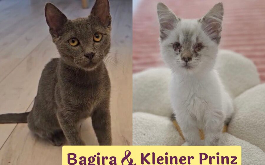 Kleiner Prinz und Bagira sind zwei besondere Katzenkinder, deren Geschichten Mut machen. Trotz schwerer Startbedingungen haben sie sich zu lebensfrohen, liebenswerten Katern entwickelt, die einander brauchen und nur gemeinsam vermittelt werden können.