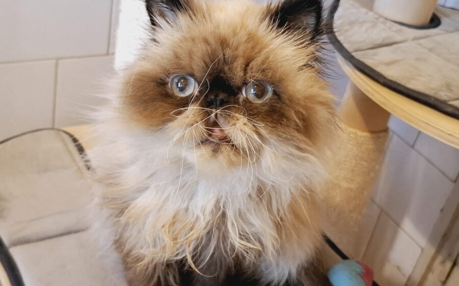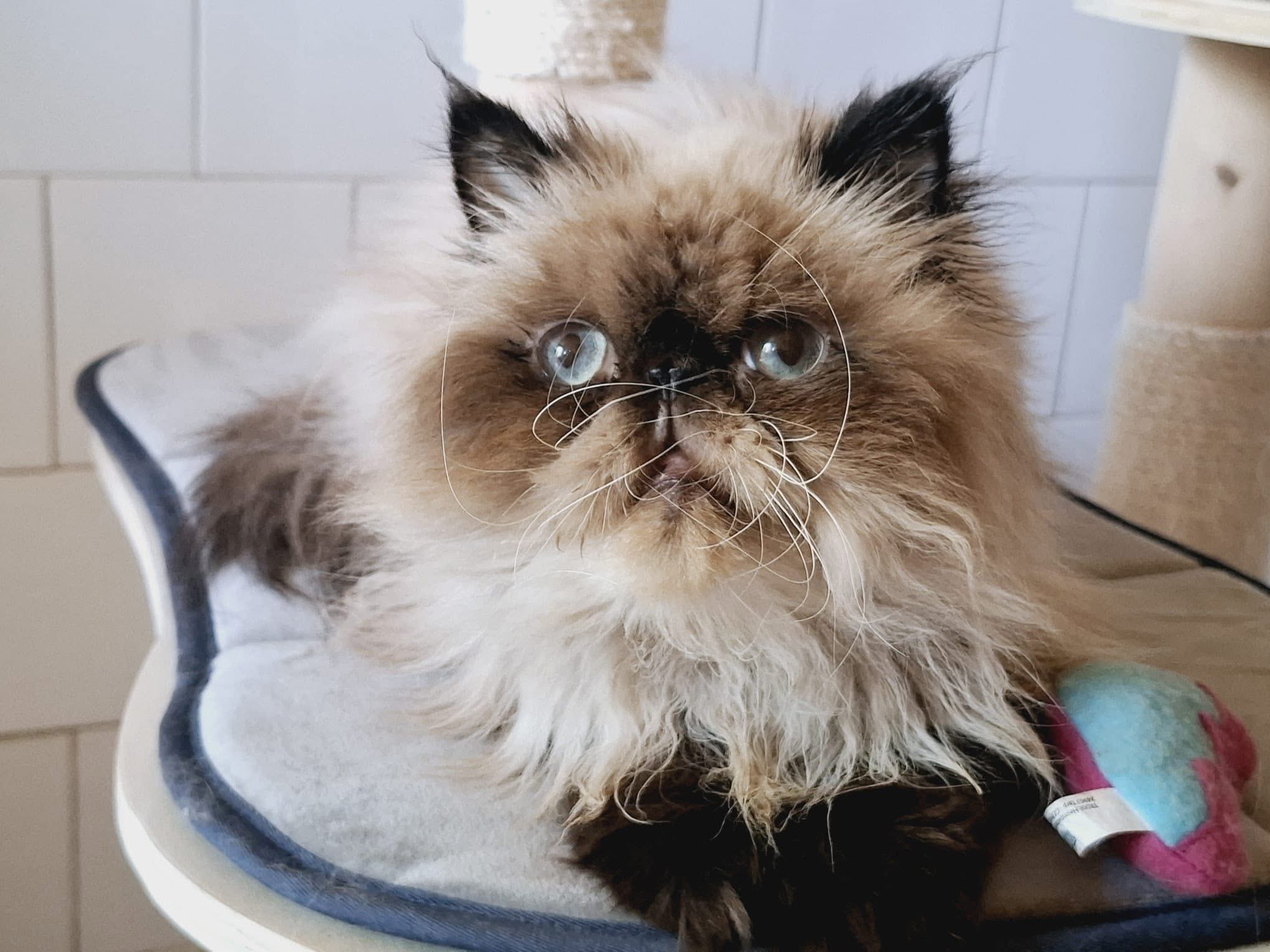 Der arme Kurkuma hatte noch nie eine echte Familie. Ursprünglich stammt er aus eine Perser-Züchtung aus Ungarn und wurde von einer rumänischen Familie adoptiert. Hier lebte einige Zeit, bis man ihn wegen einer Tierhaarallergie nicht mehr halten konnte. Kurkuma wurde weitergegeben und die nächste Familie gab ihn letztendlich ab, weil er eine starke Zahnfleischentzündung hatte, wegen welcher alle Zähne gezogen werden mussten – diese Kosten wollte die Familie nicht tragen.