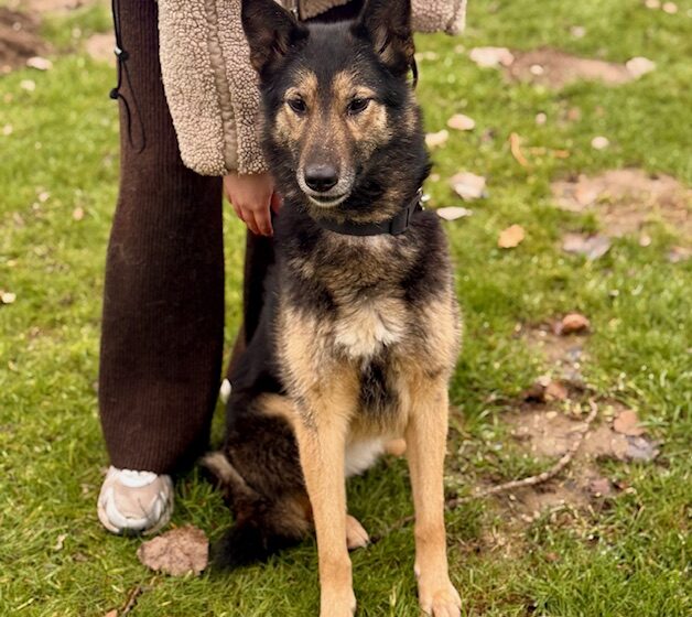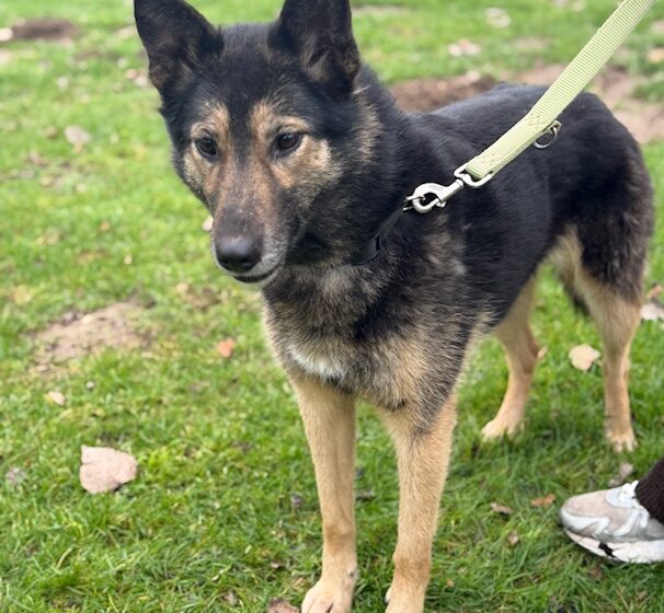 Mit ca. 55 cm Schulterhöhe und etwa 20 kg ist Lambada eine sportlich-schlanke Schäferhund-Mix-Hündin mit elegantem Erscheinungsbild, dunklem Fell und hellen Abzeichen. Sie ist intelligent, sehr lernfähig und möchte gefallen – braucht dafür aber Zeit, Geduld und Menschen, die ihre Sensibilität ernst nehmen.