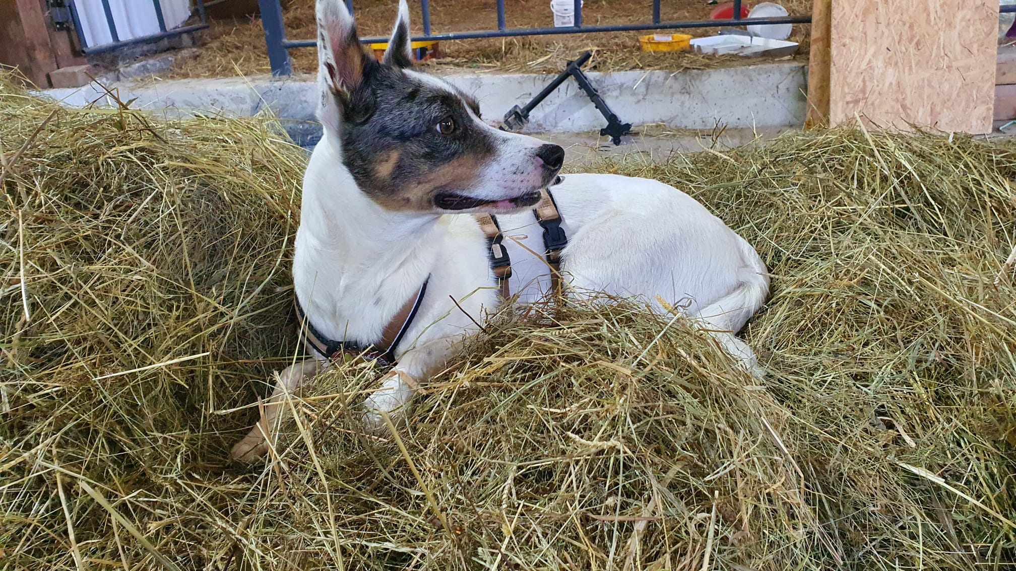 Lasmiranda ist ein sehr sportlicher Hund und braucht dementsprechend viel Bewegung. Sie liebt es, Zeit mit Pferden zu verbringen und geht gerne mit zum Wandern. Sie mag es sogar, im Traktor mitzufahren und hat auch schon Erfahrung mit dem Fahrradfahren im Rucksack. Lasmiranda ist gerne in der Natur – Wasser und Schnee sind einfach ihr Element. Sie ist etwa 2 Jahre alt und hat mit etwa 40 cm und 12 kg die optimale Größe für alle Unternehmungen.