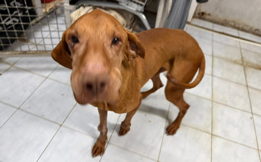 Levin ist ein etwa 9 Jahre alter Rüde mit einer Schulterhöhe von etwa 60-65 cm. Er hat einen großen, edlen und gut proportionierten Körperbau. Sein kurzes, glattes Fell hat eine auffällige rostrote Farbe, die ihm einen besonderen Charme verleiht. Sein gerader Rücken und der elegante Kopf mit der langen Schnauze unterstreichen seine anmutige Erscheinung. Die hängenden Ohren liegen seitlich am Kopf an und verleihen ihm einen freundlichen Ausdruck, auch wenn er in seiner aktuellen Situation oft traurig und verloren wirkt.