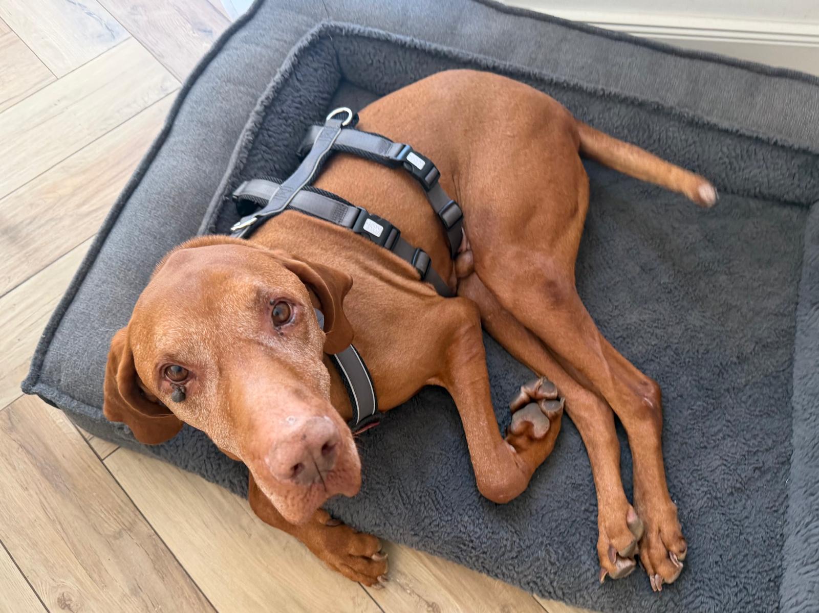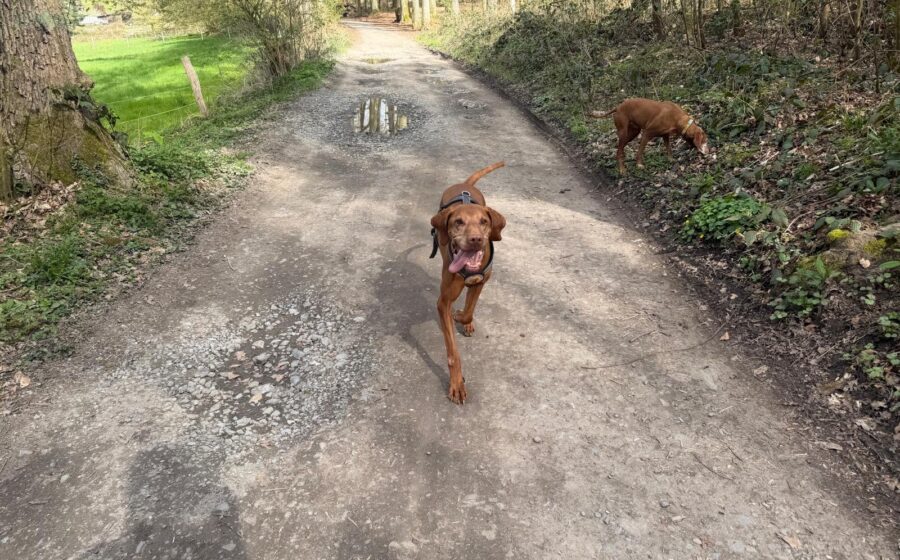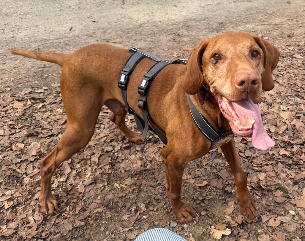Der Vizsla-Rüde Levin zeigt sich nach nur drei Tagen auf seiner Pflegestelle bereits von seiner besten Seite. Mit der vorhandenen Hündin im Haushalt ist er grundsätzlich verträglich, allerdings ist er ihr manchmal noch etwas zu stürmisch.