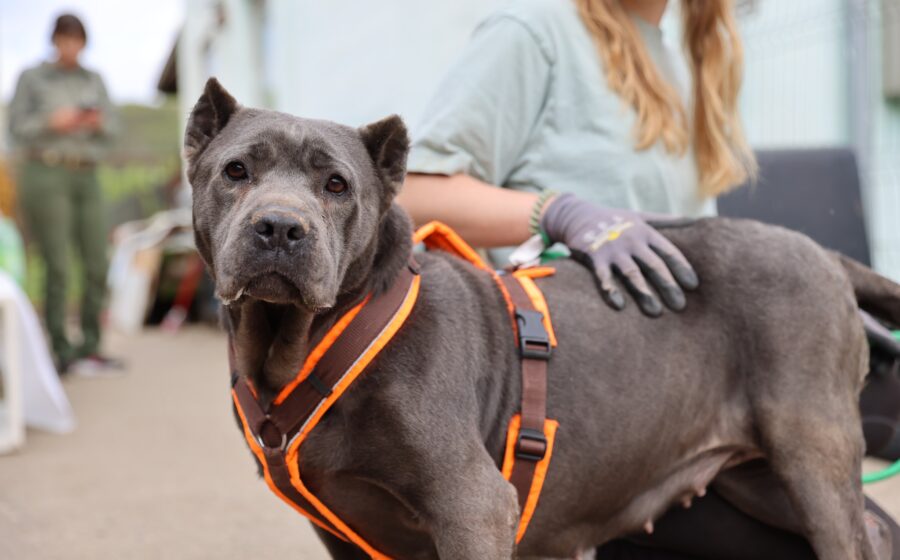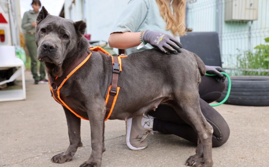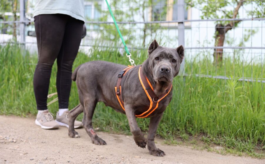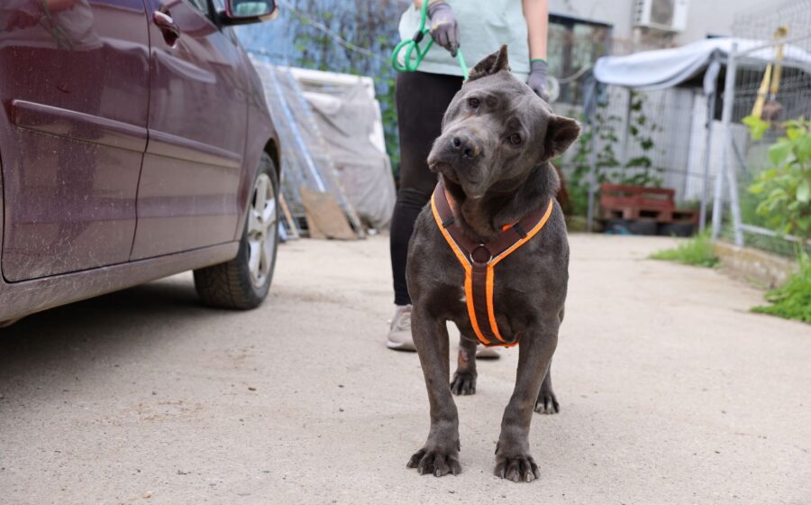 Soweit uns die Mitarbeiterin des öffentlichen Tierheims mitteilte, handelt es sich um einen Cane Corso-Mischling. Leider sind ihre Ohren und ihr Schwanz kupiert, so dass sie nicht in die Schweiz einreisen darf. Sie hatte einige tiefe Wunden an den Hinterbeinen. Diese wurden behandelt und sind nun zu etwa 80 % verheilt. Es wird erwartet, dass die Wunde vollständig verheilt, aber es werden wahrscheinlich einige Narben zurückbleiben.