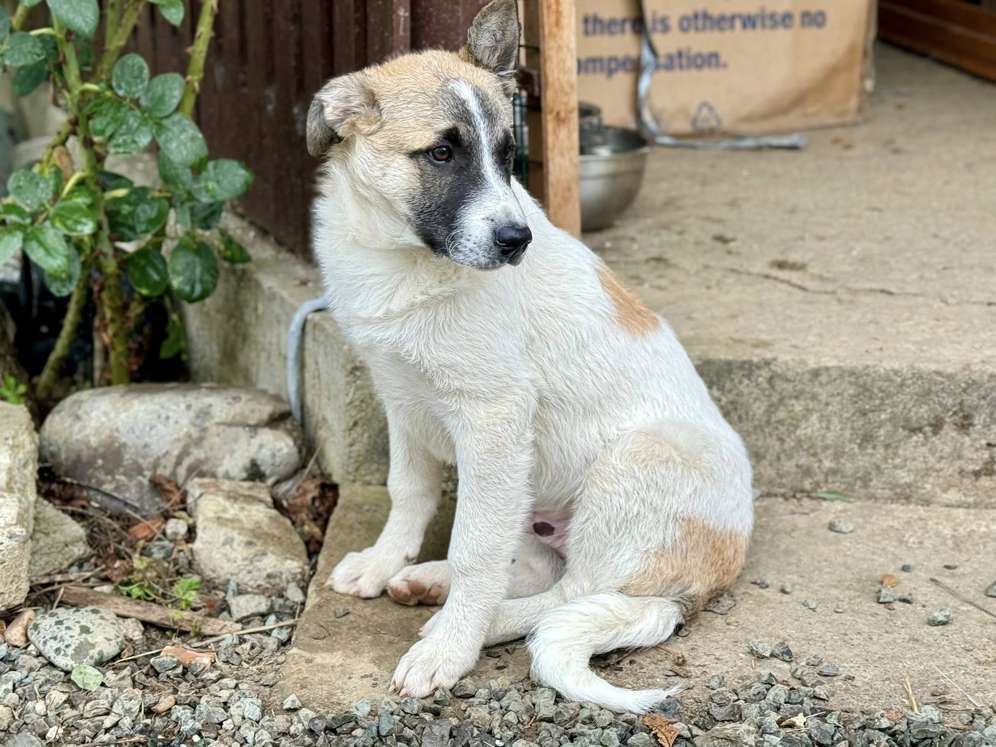 Limoncello ist erst 3 – 4 Monate alt und noch ein richtiges Baby – kuschelig und weich. Limoncellos Fell ist strahlend weiß mit brau-schwarzen Flecken und einer wunderschönen schmalen Blesse im hübschen Gesicht. Vermutlich werden die Racker eine große Größe erreichen. Die Mutter der Welpen ist vermutlich ein Malinois-Mischling. Den Vater kennen wir leider nicht, daher können wir einen Herdenschutzhund-Einschlag nicht ausschließen. Aus diesem Grund suchen wir verantwortungsbewusste Menschen, die Erfahrung mit aktiven und charakterstarken Hunden haben. Künftige Halter:innen sollten Freude an konsequenter Erziehung, artgerechter Beschäftigung und einem sicheren Umfeld mitbringen, damit sich die Kleinen zu ausgeglichenen und verlässlichen Begleitern entwickeln können.