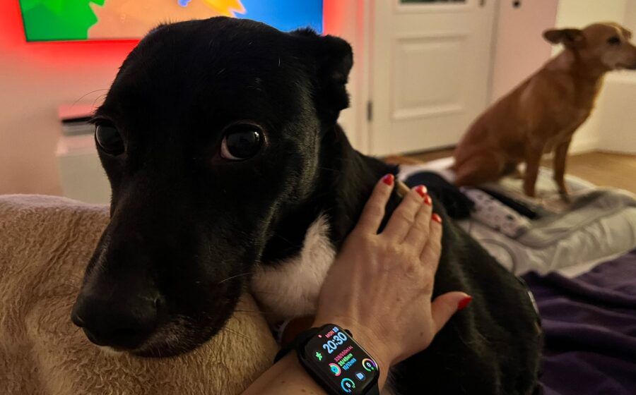 Während sie sich anfangs noch häufig auf ihren Rückzugsort zurückgezogen hat, nimmt sie inzwischen immer mehr am Familienleben teil. Erste entspannte Spaziergänge an der Leine sind inzwischen möglich, und auch Streicheleinheiten kann sie immer besser genießen.