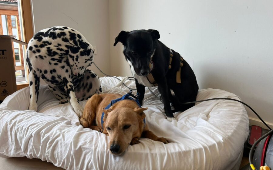 Mit den vorhandenen Hunden versteht sich Liva gut, und sogar ihre erste Autofahrt in die Berge hat sie souverän gemeistert.