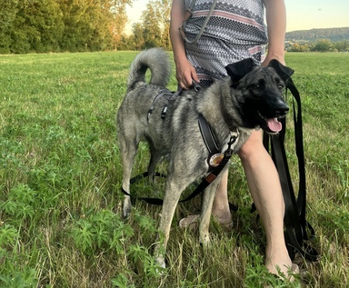 Die junge Hündin hat vermutlich noch allerlei Pubertätsflausen in ihrem Kopf. So zeigt sie sich draußen teilweise unsicher und überspielt diese Unsicherheit mit Pöbeln. Zum Beispiel sind plötzlich auftauchende Radfahrer ein großes Problem für sie. Trifft sie draußen bekannte Hundefreunde reagiert sie mit purer Freude. Gegenüber fremden Hunden ist sie skeptisch und angespannt. Wenn sie jedoch mit einem fremden Hund die Möglichkeit hat, Kontakt aufzunehmen, hat sie sich bis jetzt mit jedem Hund gut verstanden. Lotta ist mit Futter gut leinenführig, ohne hat sie noch oft ihren eigenen Kopf. Man muss sich für sie sehr interessant machen, damit sie einen Ansatz von Orientierung zeigt.