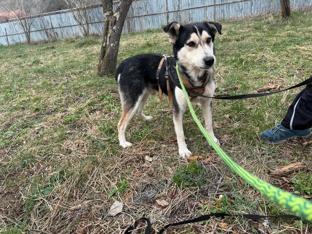 Der wunderschöne Rüde ist etwa 5,5 Jahre alt. Sein schwarz-weißes Fell mit beigen Akzenten verleiht ihm eine besondere Ausstrahlung, und seine beiden Ohren, die charmant „ihr eigenes Ding machen“, geben ihm einen unverwechselbaren, liebenswerten Ausdruck.
