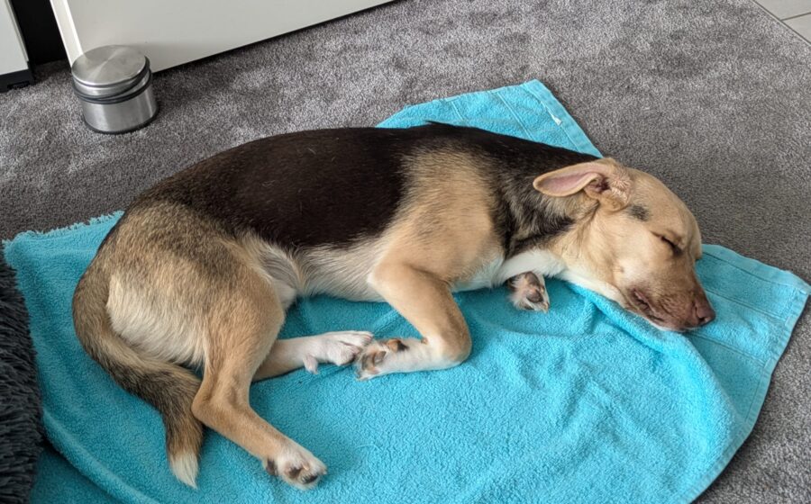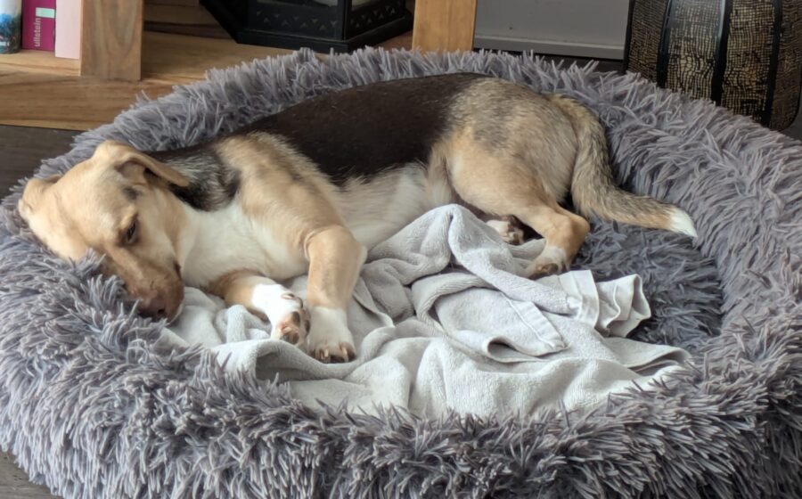 Luis ist ein junger Hund, der sehr schnell lernt. Das Anziehen des Geschirrs war anfangs eine Herausforderung, aber nach einigen Versuchen merkte er, dass er keine Angst davor haben muss. Heute lässt er sich problemlos streicheln, schläft zufrieden in seinem Körbchen und geht auch die Treppen hoch und runter, als hätte er nie etwas anderes gemacht. Spaziergänge liebt er, auch wenn er hin und wieder noch vor unbekannten Geräuschen erschrickt. In solchen Momenten orientiert er sich an den anderen Hunden, die ihm zeigen, dass alles in Ordnung ist.