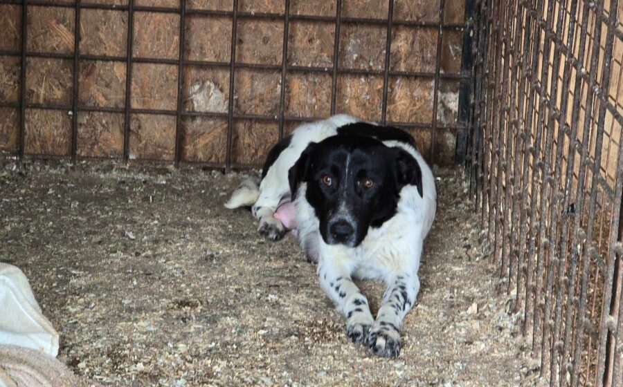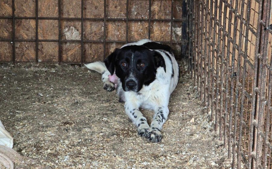 Es ist laut, sie kann nicht flüchten und auch wenn sie hier in Sicherheit ist und versorgt wird, ist ihre bekannte Welt zusammengebrochen und hat sie vor allem Angst. Die großen Augen im schwarzen ausdrucksstarken Gesicht, spiegeln ihre Verwirrung und auch ihr Körper mit dem weiß-schwarzen Fell und schwarzen Sommersprossen auf den Beinen scheint immer auf der Hut zu sein. Wir schätzen das Alter dieser liebevollen Mama auf ca. 1,5 Jahre und vermuten, dass dies ihr erster Wurf ist.  Macchia hat eine mittelgroße Statur mit einem Gewicht von ca. 16 -18 kg und einer Schulterhöhe um die 40-50 cm.