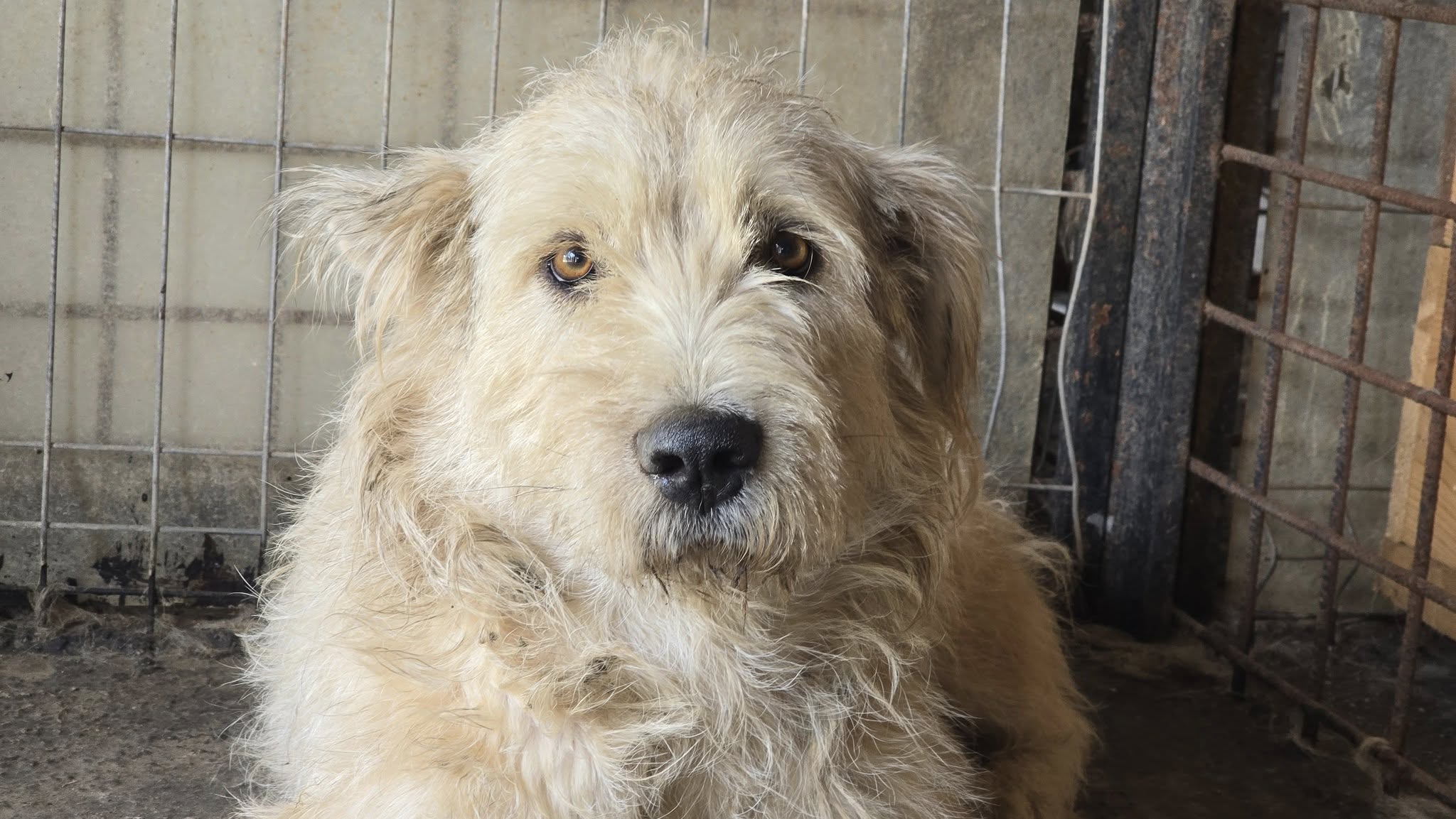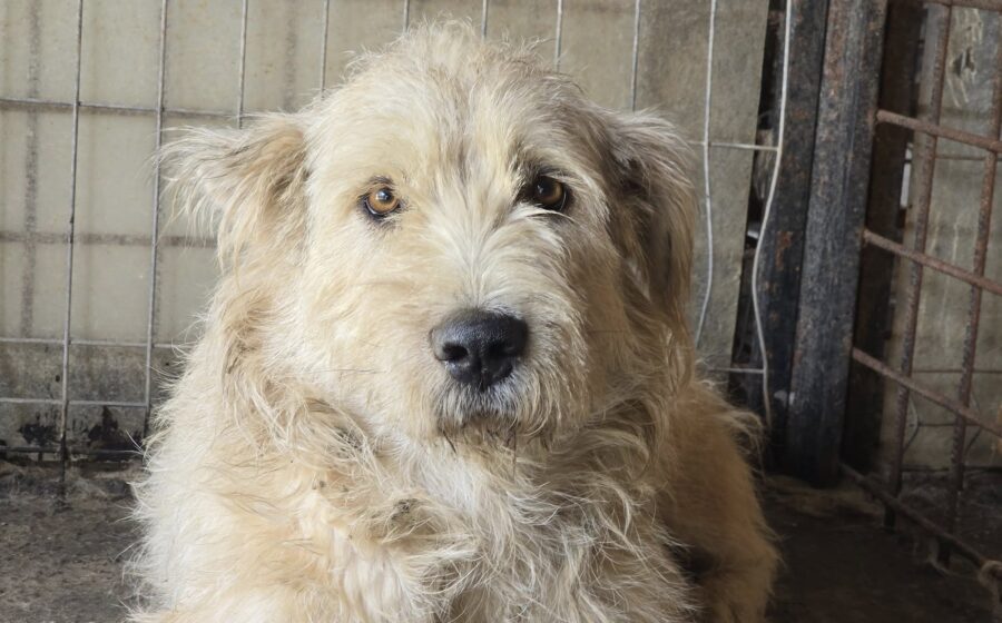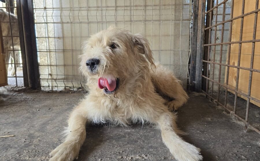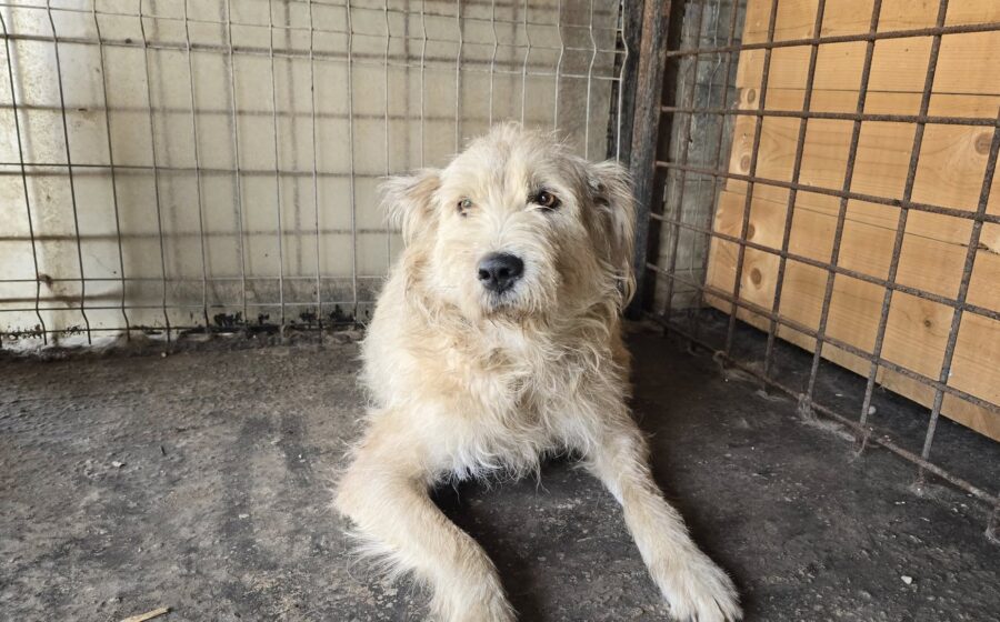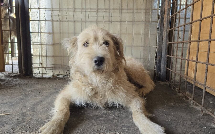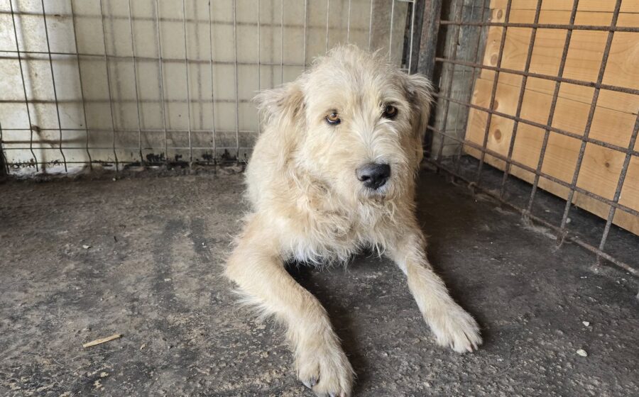 Magda ist eine wunderschöne Hündin mit einer beeindruckenden Erscheinung: Etwa 60 cm groß, kräftig gebaut mit einem Gewicht von ca. 30–35 kg abei aber ruhig und freundlich im Wesen. Mit ihrem hellen, wuscheligen Fell lässt sie die Herzen der Helfer und Helferinnen vor Ort höher schlagen.
