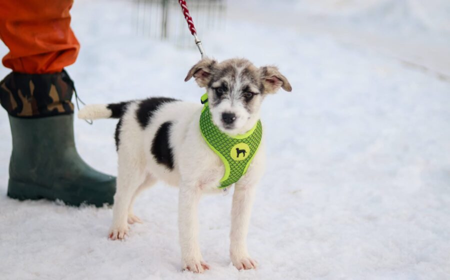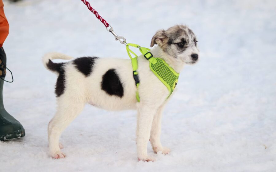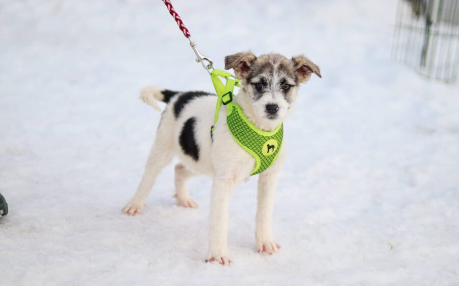 Maila heißt dieses wunderschöne Hundekind, das gemeinsam mit seinen vier Geschwistern Clio, Flöckchen, Shane und Sinti verlassen und orientierungslos in eisiger Kälte und Schnee gefunden wurde. Und das war ihr Glück – lang hätten die kleinen Welpen hier nicht überlebt.
