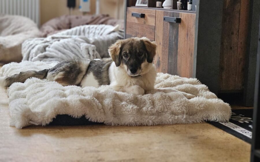 Wie sie sich mit Katzen versteht, können wir aktuell leider nicht sagen. Wir können auch nicht ausschließen, dass in ihr Hütehundgene stecken – die sich bemerkbar machen könnten, wenn sie aufgetaut ist. Diese Hunde benötigen eine kompetente und verlässliche Führung und sollten ihrem Trieb durch Aktivitäten wie Treib- und Suchspiele, Agility oder ähnliches nachkommen dürfen, um keine Unterforderung und damit verbundene Probleme