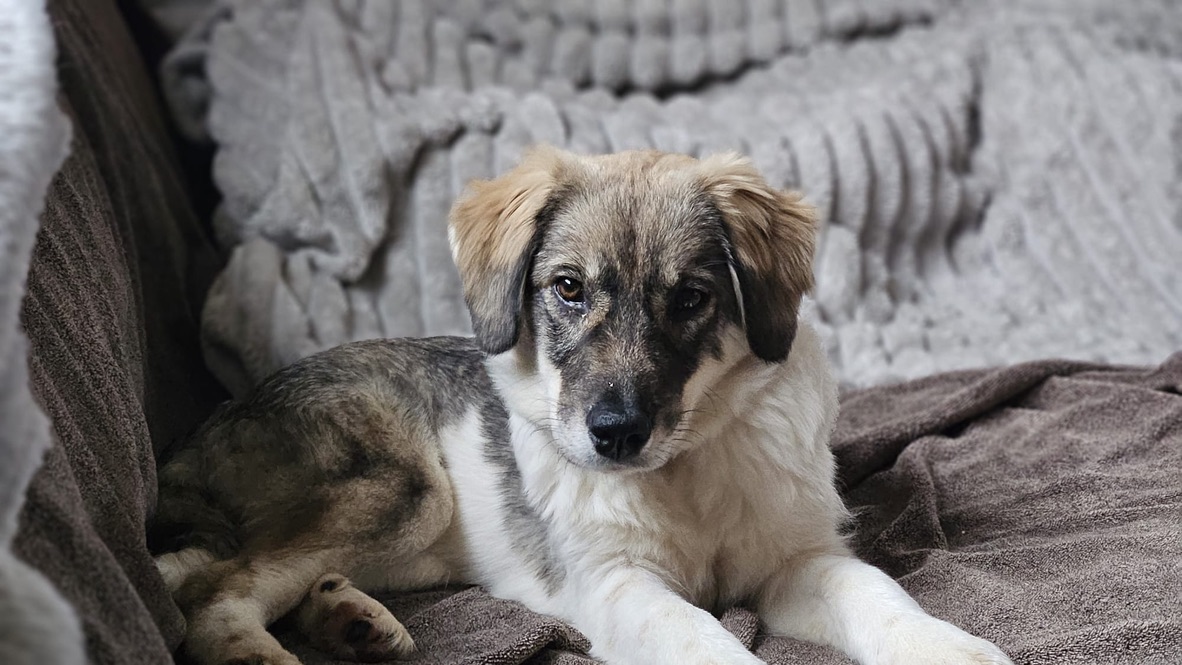 Die süße Mala wurde gemeinsam mit drei weiteren Welpen aus einem verlassenen Haus gerettet. Aufmerksame Menschen hatten die kleine Hundegruppe entdeckt und die Behörden verständigt – so kam Mala zu den Hundefängern und schließlich in unsere Obhut.