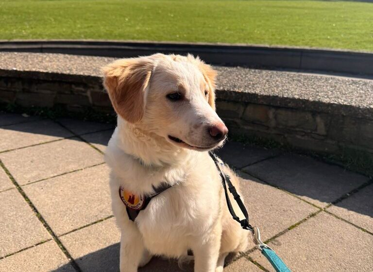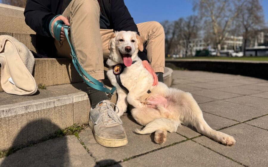 Der junge Rüde ist sehr clever und ausgesprochen lernwillig. Für Leckerlis ist er hoch motiviert und hat auf seiner Pflegestelle bereits schnell „Sitz“, „Platz“ und das Auf-den-Platz-Gehen gelernt. Das Hunde-1×1 steht allerdings noch am Anfang – Stubenreinheit und Leinenführigkeit müssen noch geübt werden.