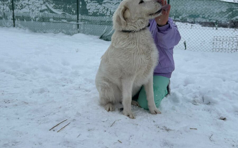 Mit ihren inzwischen etwa 69 cm Schulterhöhe und rund 52 kg ist Mandy eine beeindruckende Erscheinung. Ein großer, weißer Flauschball mit sanfter Ausstrahlung. Sie wirkt stark und souverän, dabei aber keineswegs grob oder ungestüm. Eher wie ein Rohdiamant, der noch geschliffen werden darf. Ob sie das Leben im Haus kennt, können wir nicht sagen. Deshalb sollte man davon ausgehen, dass Dinge wie Stubenreinheit, Leinenführigkeit, feste Routinen und das alltägliche Zusammenleben in einer Familie für sie noch neu sind. Mandy bringt dafür aber etwas sehr Wertvolles mit: Zeit. Sie ist nicht mehr ganz jung, nicht mehr wild und ungestüm, sondern im besten Alter angekommen, in dem Lernen in Ruhe, mit Geduld und positiver Verstärkung besonders gut funktioniert.