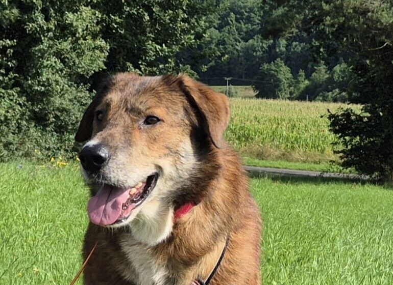 Marius ist ein wunderschöner, gestromter, Rüde mit einer Schulterhöhe von etwa 60 cm. Optisch erinnert Marius an einen Schäferhund – gut möglich, dass diese treuen, aufmerksamen und bindungsstarken Hunde in seinem Genpool sind. Marius sucht ein ländliches, ruhiges Zuhause, gerne mit Ersthund und mit einem eingezäunten Garten.