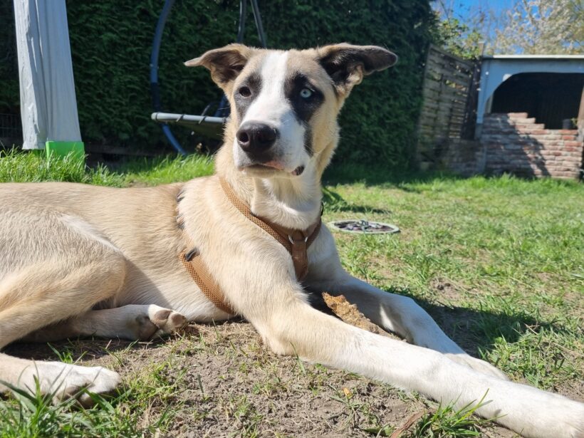 Marlow ist der Sohn einer, wie wir stark, annehmen, Malinois-Husky-Mischlingshündin. Das erklärt auch sein Interesse an seiner Umwelt und die Freude am Lernen. Marlow versteht schon mehrere Aufforderungen wie ‚Sitz‘, ‚Bleib‘ und ‚Platz‘. An der Leine läuft der hübsche Marlow schon gut. Er lässt sich an der Schleppleine bereitwillig zurückrufen. Beim Autofahren verhält er sich ruhig, benötigt aber noch ein bisschen Zeit und Übung, denn längere Fahrten verträgt Marlow noch nicht.